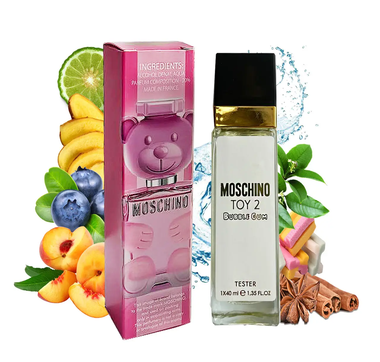 Смачна, яскрава, гламурна і неймовірно красива – все це туалетна вода Toy 2 Bubble Gum бренда Moschino, створена парфумером Olivier Pescheux. Звучання квітково-фруктової композиції з вишуканим східним характером – справжній маніфест рожевого з яскравими акцентами, а культовий флакон у формі плюшевого ведмедика з прозорого скла розкриває ніжні обійми для своєї прекрасної власниці.