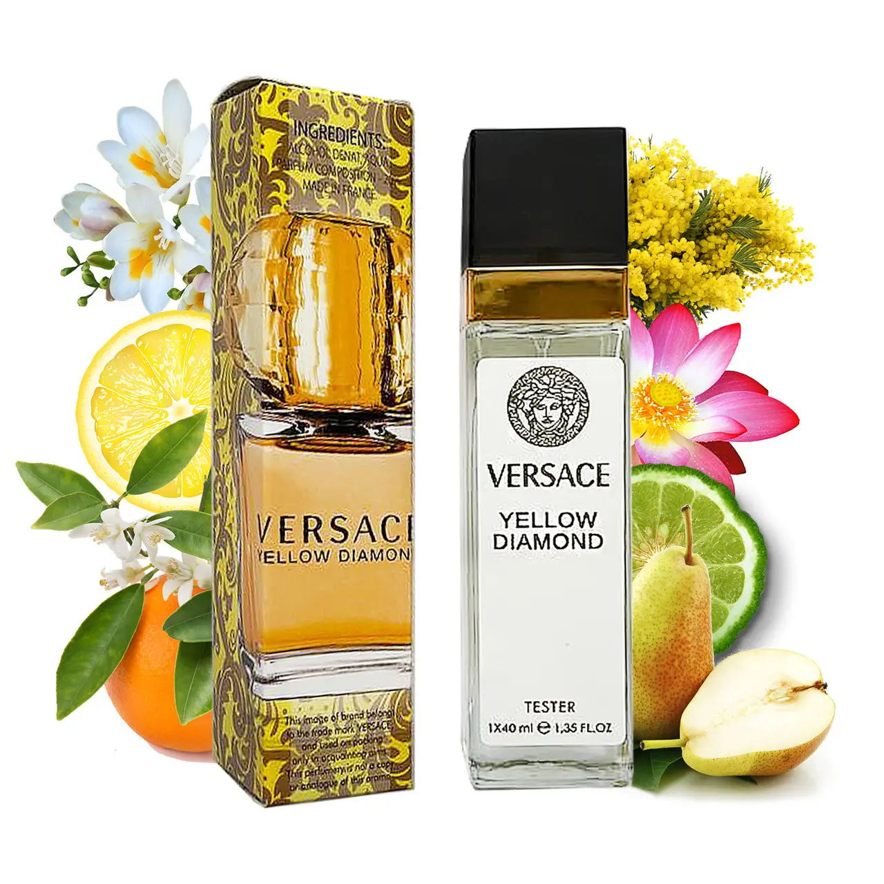 Жінки, яким подобається Versace Yellow Diamond, можуть зізнатися у завзятості, легкості та енергійності, проте одночасно мають чисту й шляхетну ауру, яку здатні підкреслити вишукані парфуми. Володаркою топового аромату 2011 року може стати кожна особа, незалежно від віку та способу життя. Туалетна вода здатна підняти свою володарку на вершину п’єдесталу та допомогти завойовувати серця. Верхніми нотами аромату виступають лимон, неролі, груша і бергамот. «Сердечна» композиція поєднує ніжні та солодкі квіти фрезії, мімози, латаття і флердоранжу. Базову ноту втілили гваякове дерево, амбра і сандал.